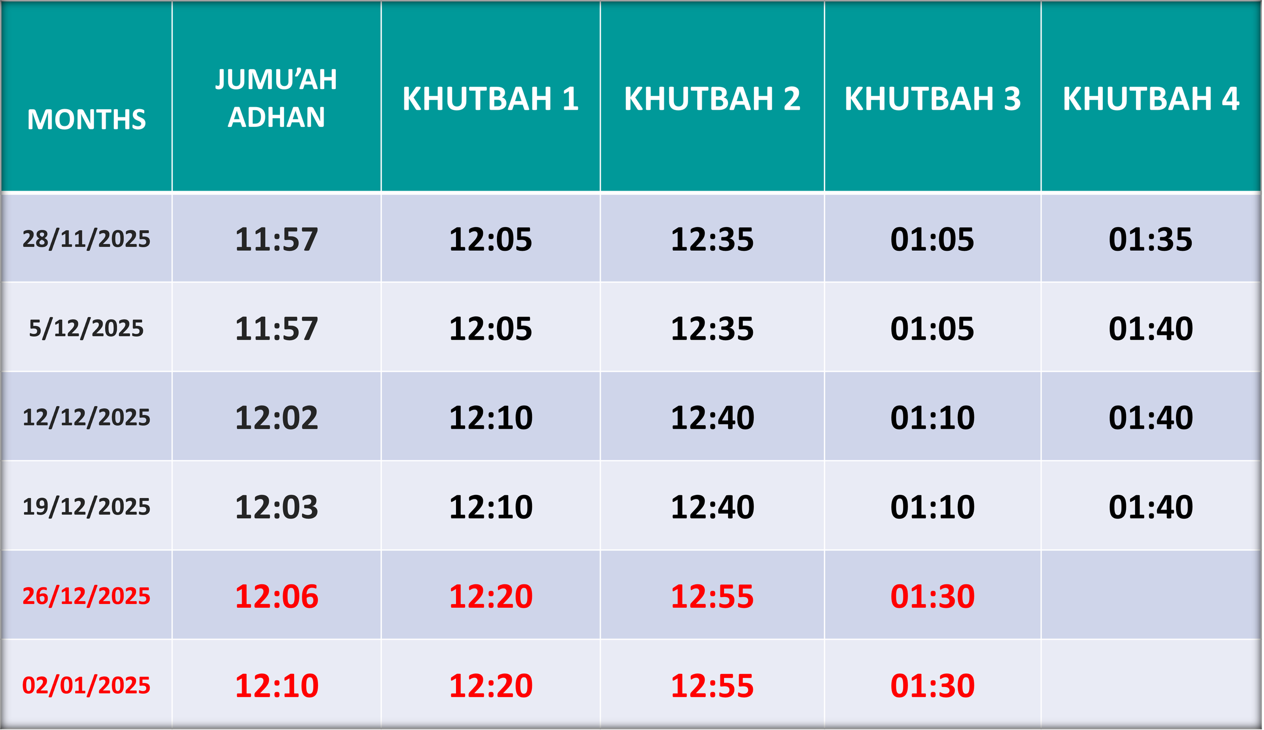 Jumu’ah Timings for Winter 2025